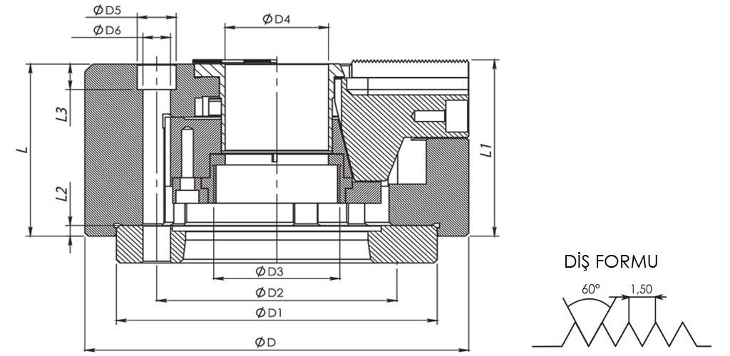 | Ø | D | D1 | D2 | D3 | D4 | D5 | D6 | L | L1 | L2 | L3 | L4 | L5 |